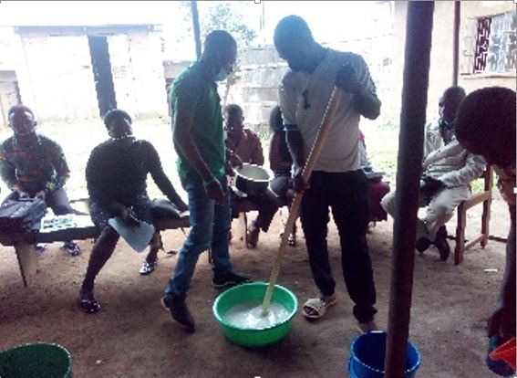 For our farmers to have a side income in order not to sell their crops before maturing we train them in different skills like, liquid and bar making, Petroleum jelly making, candle making, body alignment making Organic pesticide making, yoghurt making and wine making this has empowered farmers in the refugee camps of Rwamwanja, Kyaka, Nakivale and nationals from Kanungu Mbarara and other districts